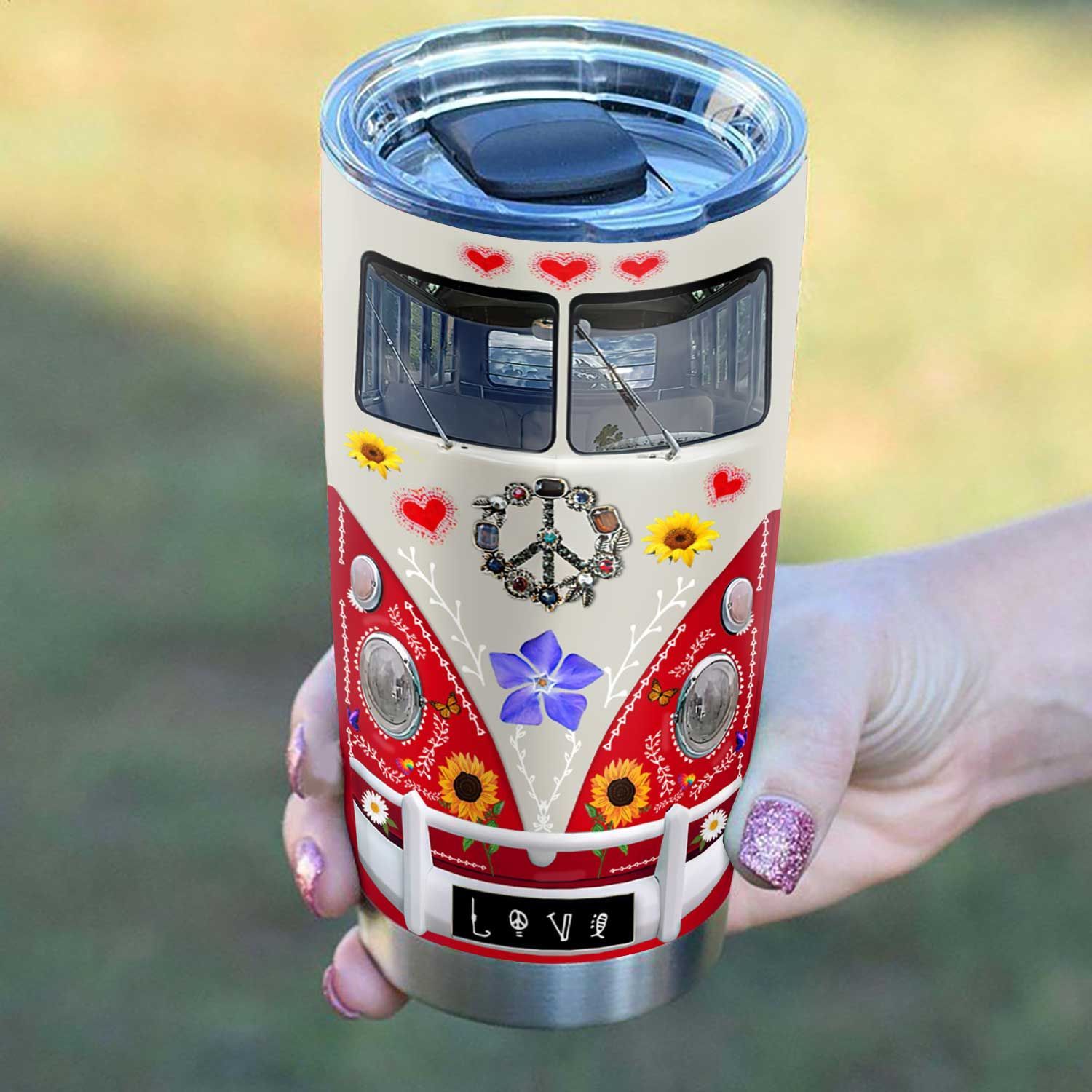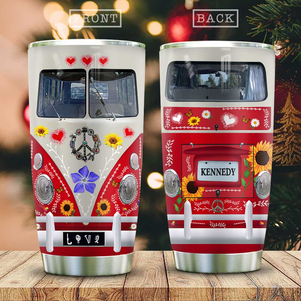 Red Hippie Van Personalized Stainless Steel Tumbler