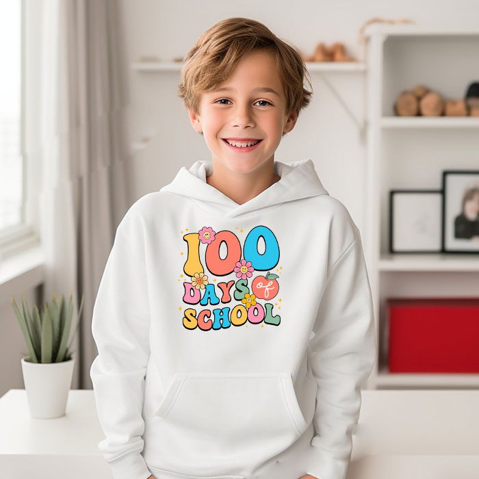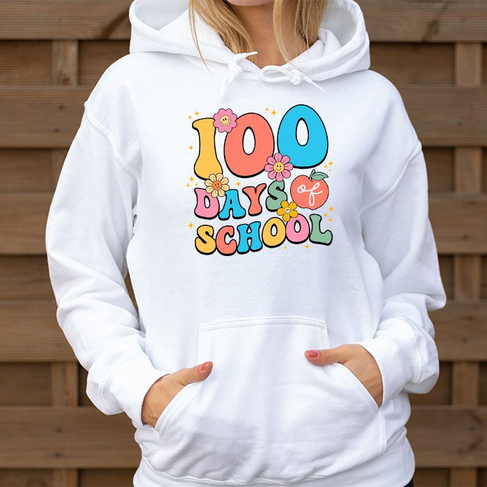 Retro Groovy 100 Days Happy 100th Day Of School Teacher Kids Hoodie