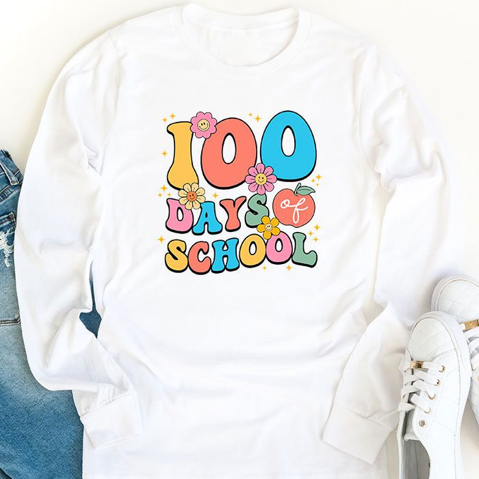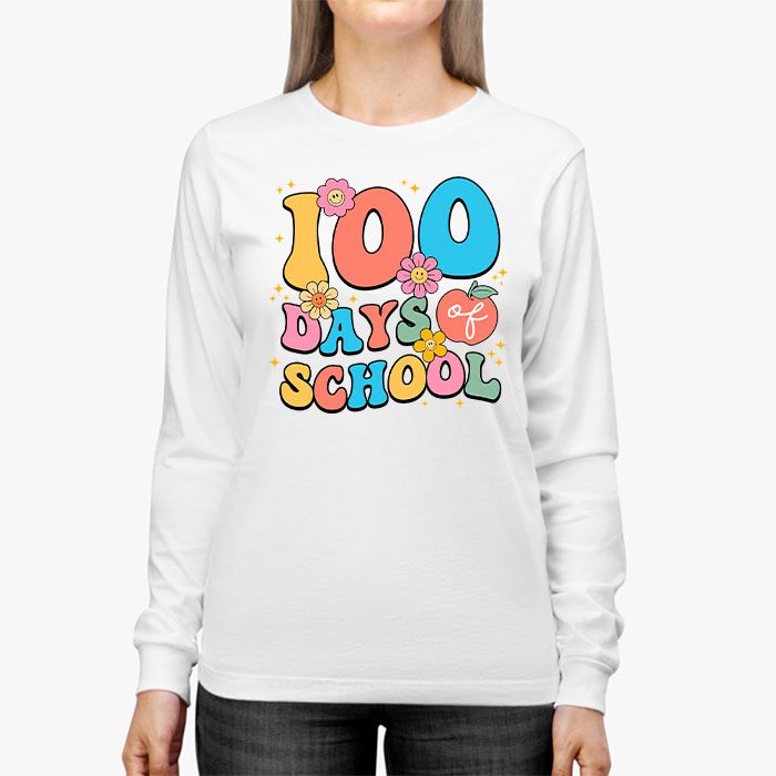 Retro Groovy 100 Days Happy 100th Day Of School Teacher Kids Longsleeve Tee