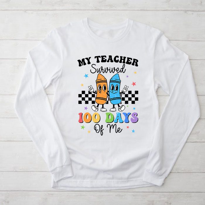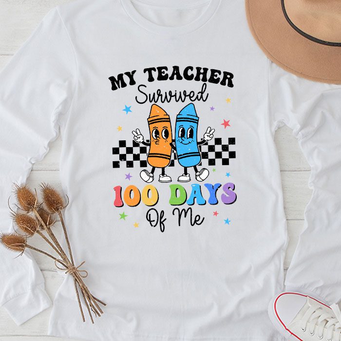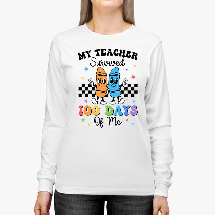 Retro Groovy School Boys Girls Kids Gift 100 Days Of School Longsleeve Tee