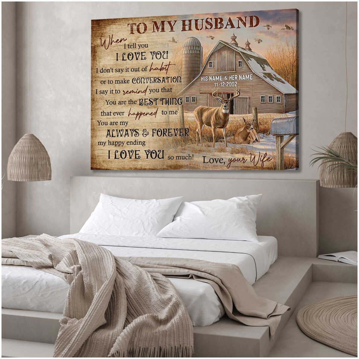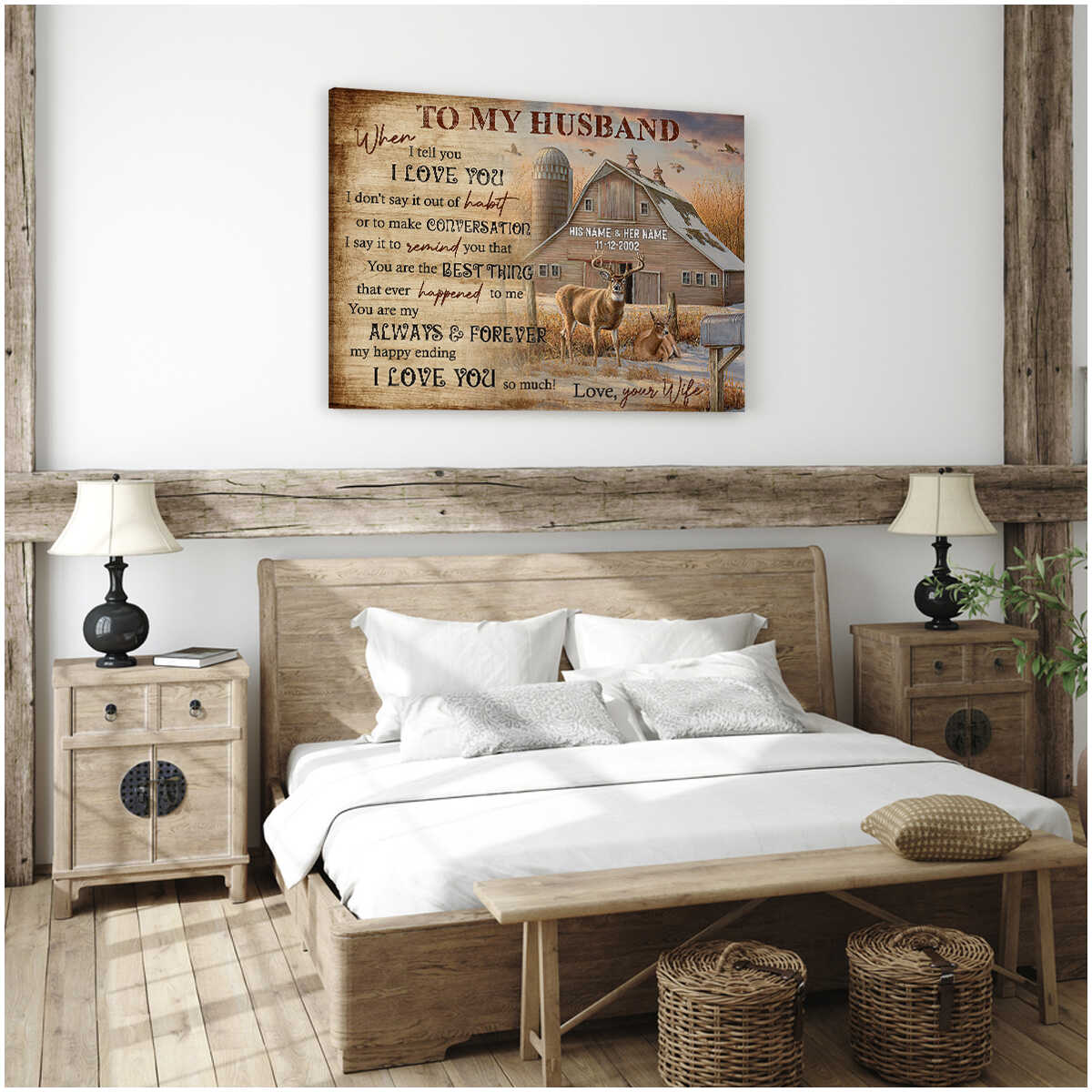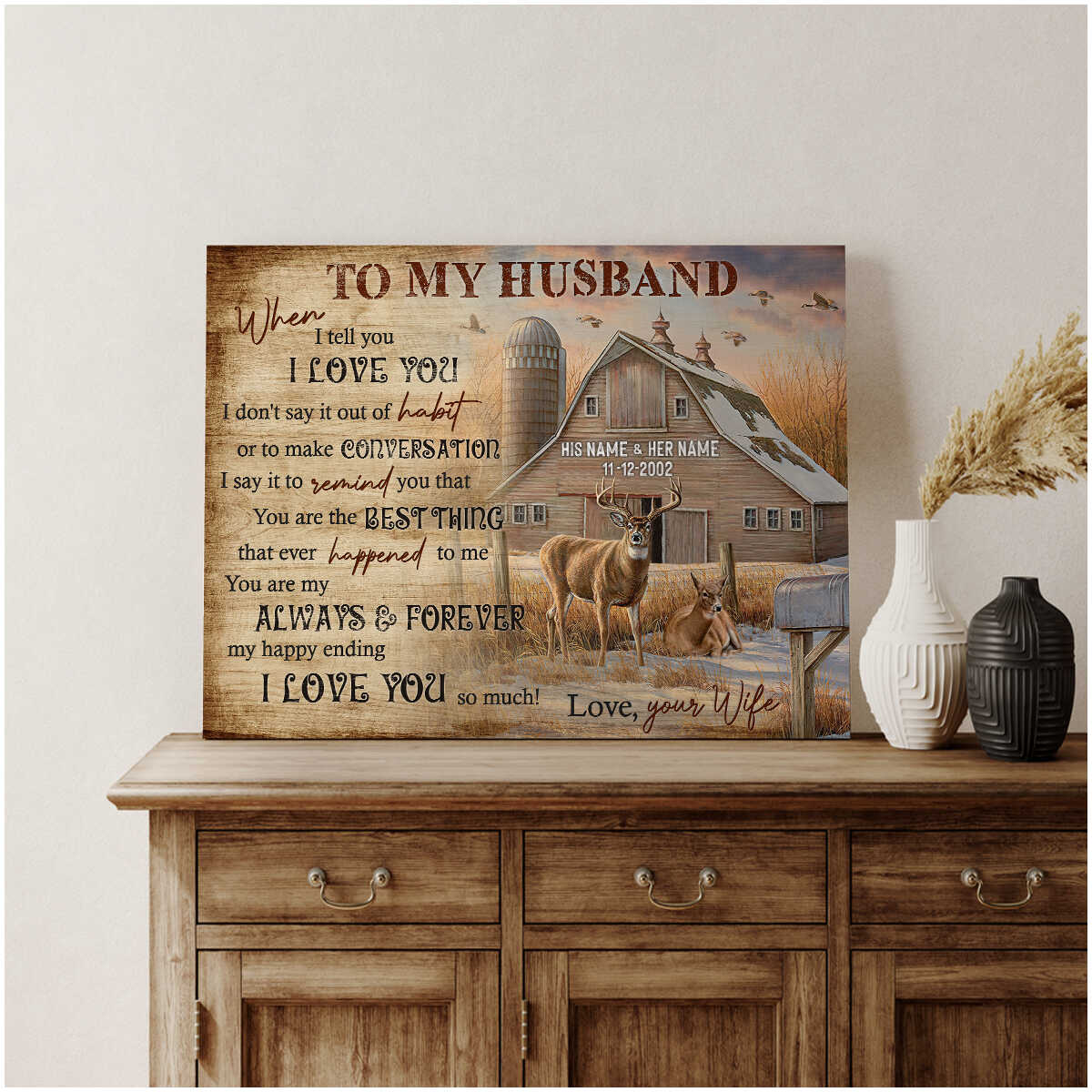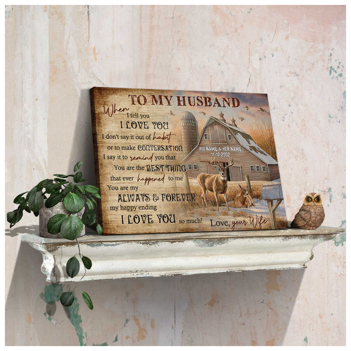 Romantic Personalized Custom Name And Date Farmhouse Buck And Doe To My Husband Farm Farmer Farmhouse Canvas Prints Wall Art Decor