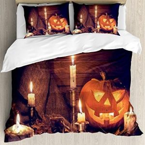 Rustic Wooden Planks Burning Candles Halloween Duvet Cover Bedding Set Bedroom Decor