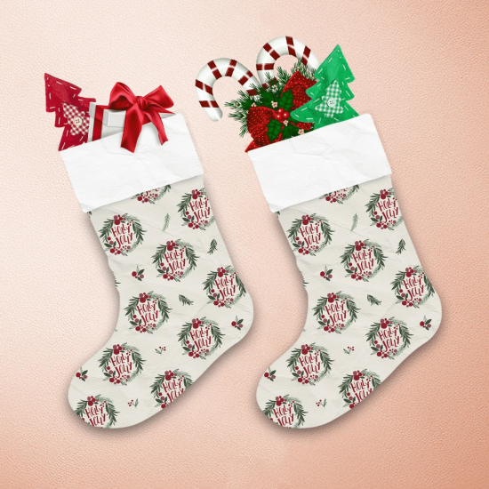 Santa Claus With Snowflake And Holly Christmas Vintage Style Christmas Stocking
