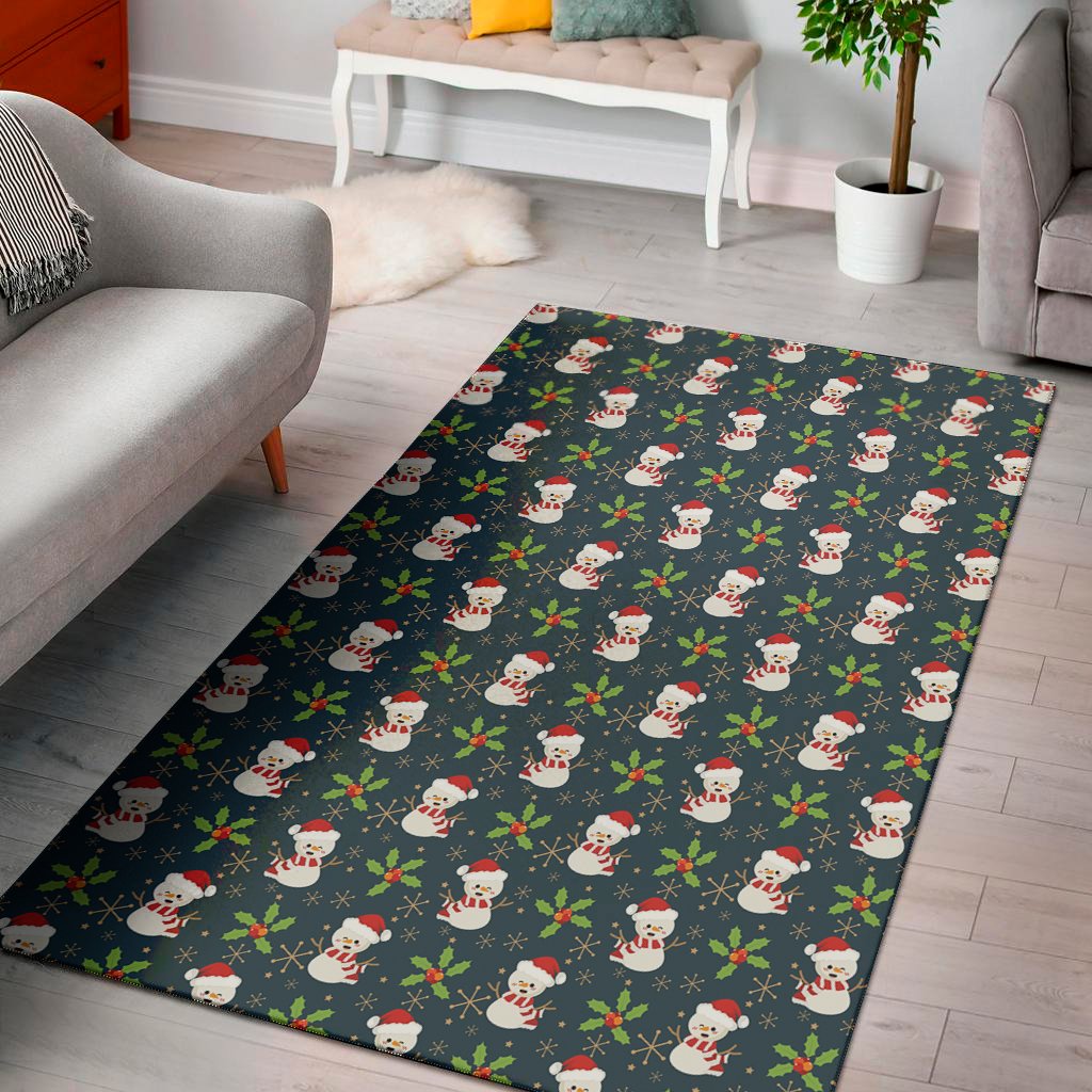 Santa Snowman Pattern Print Area Rug Floor Decor