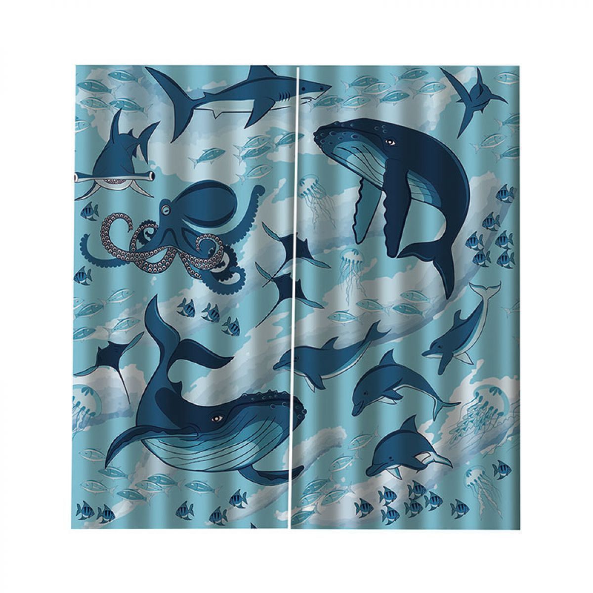 Sea Fish Ocean Life Printed Window Curtain Home Decor