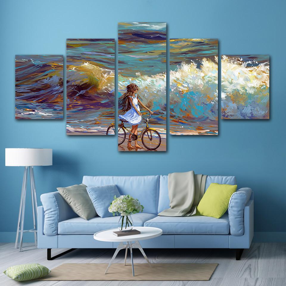 sea water bicycle sky – Abstract 5 Panel Canvas Art Wall Decor