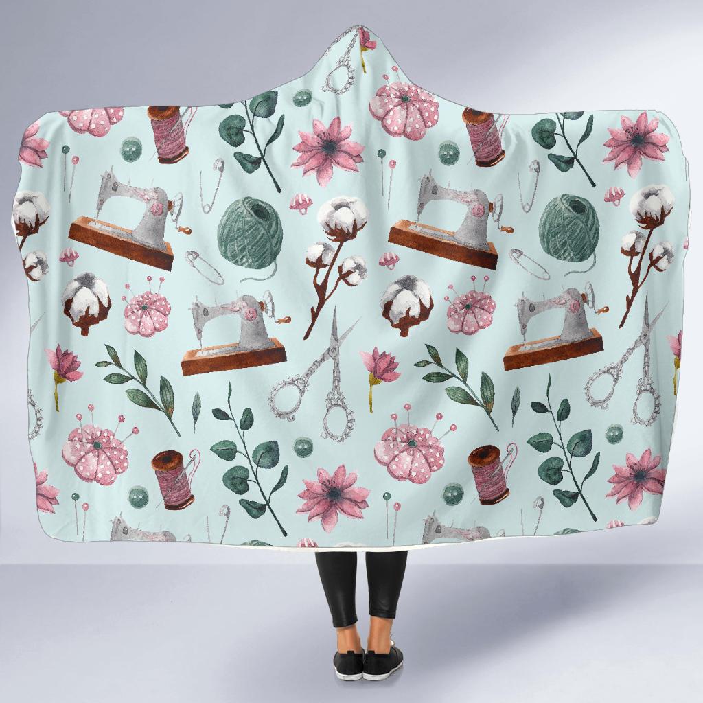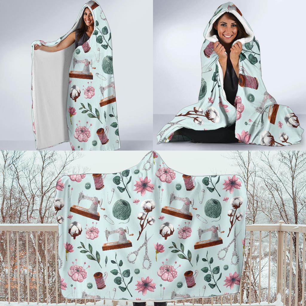 Sewing Pattern Print Hooded Blanket Cloak Blanket