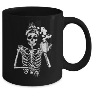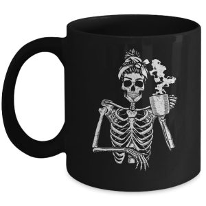 Skeleton Drinking Coffee Messy Bun Halloween Costume Ceramic Mug