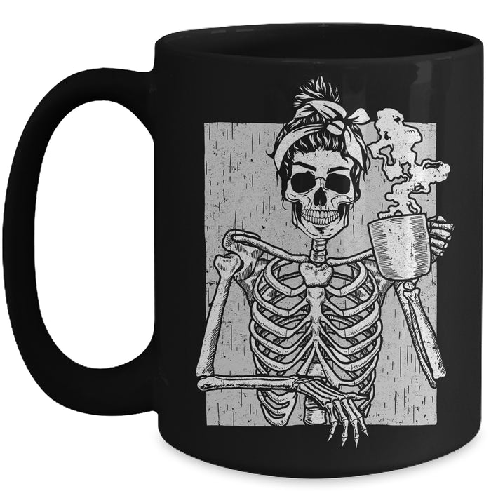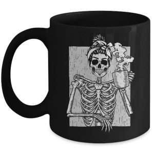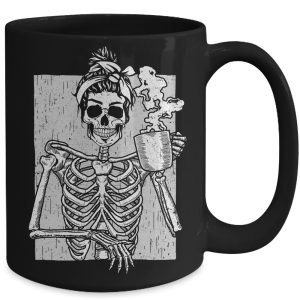 Skeleton Drinking Coffee Messy Bun Halloween Costume