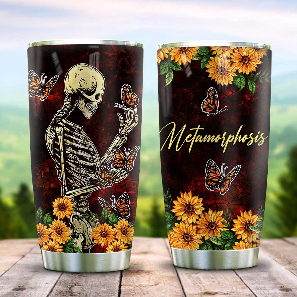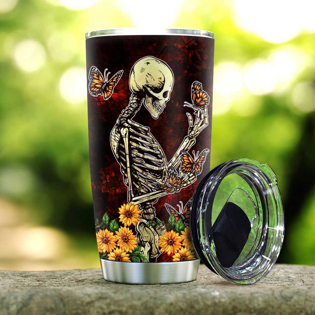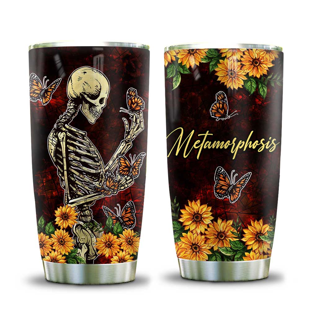 Skull And Butterfly Metamorphosis Stainless Steel Tumbler