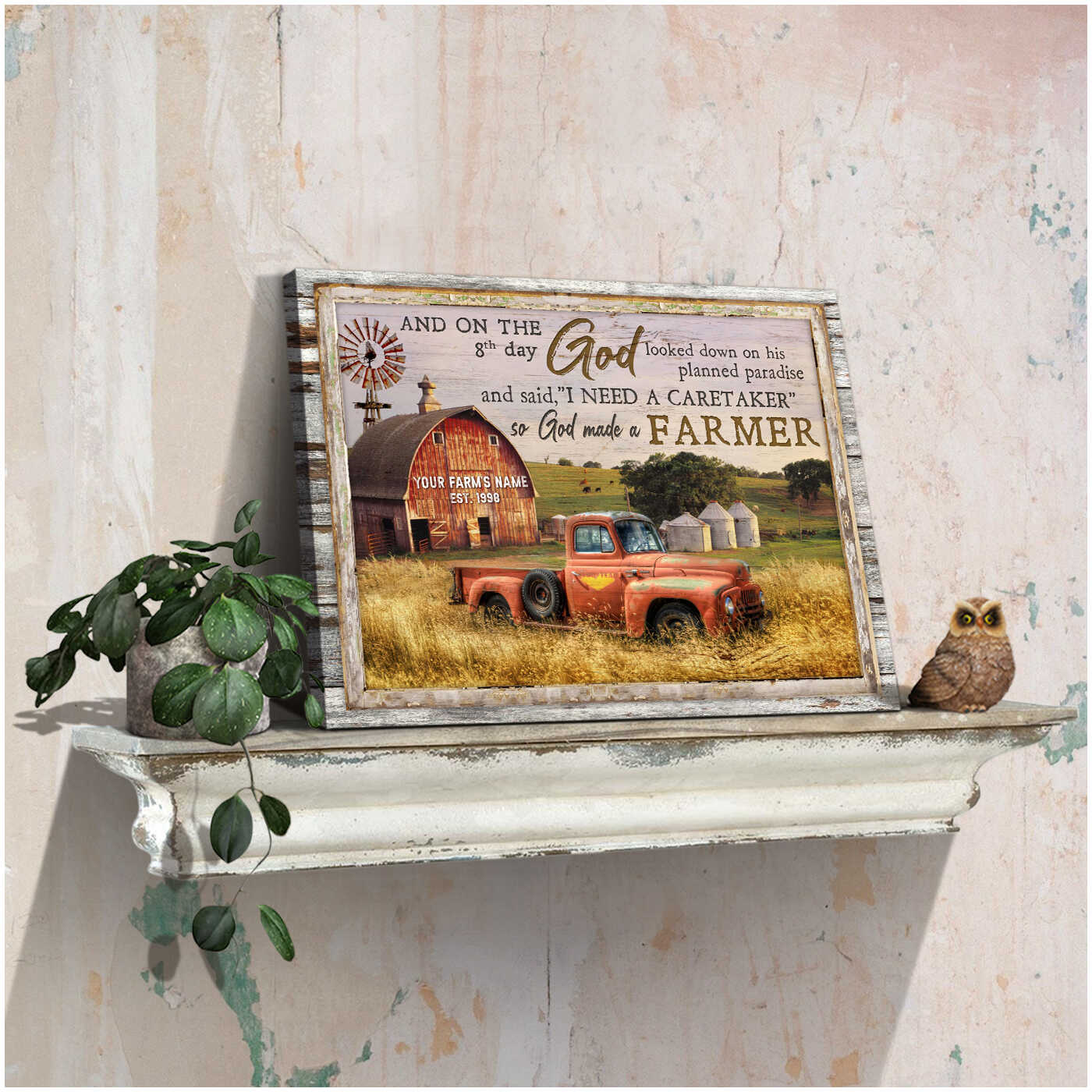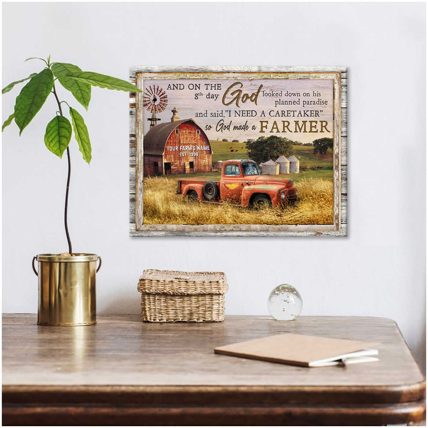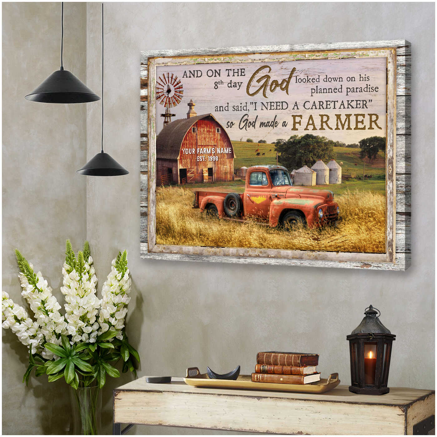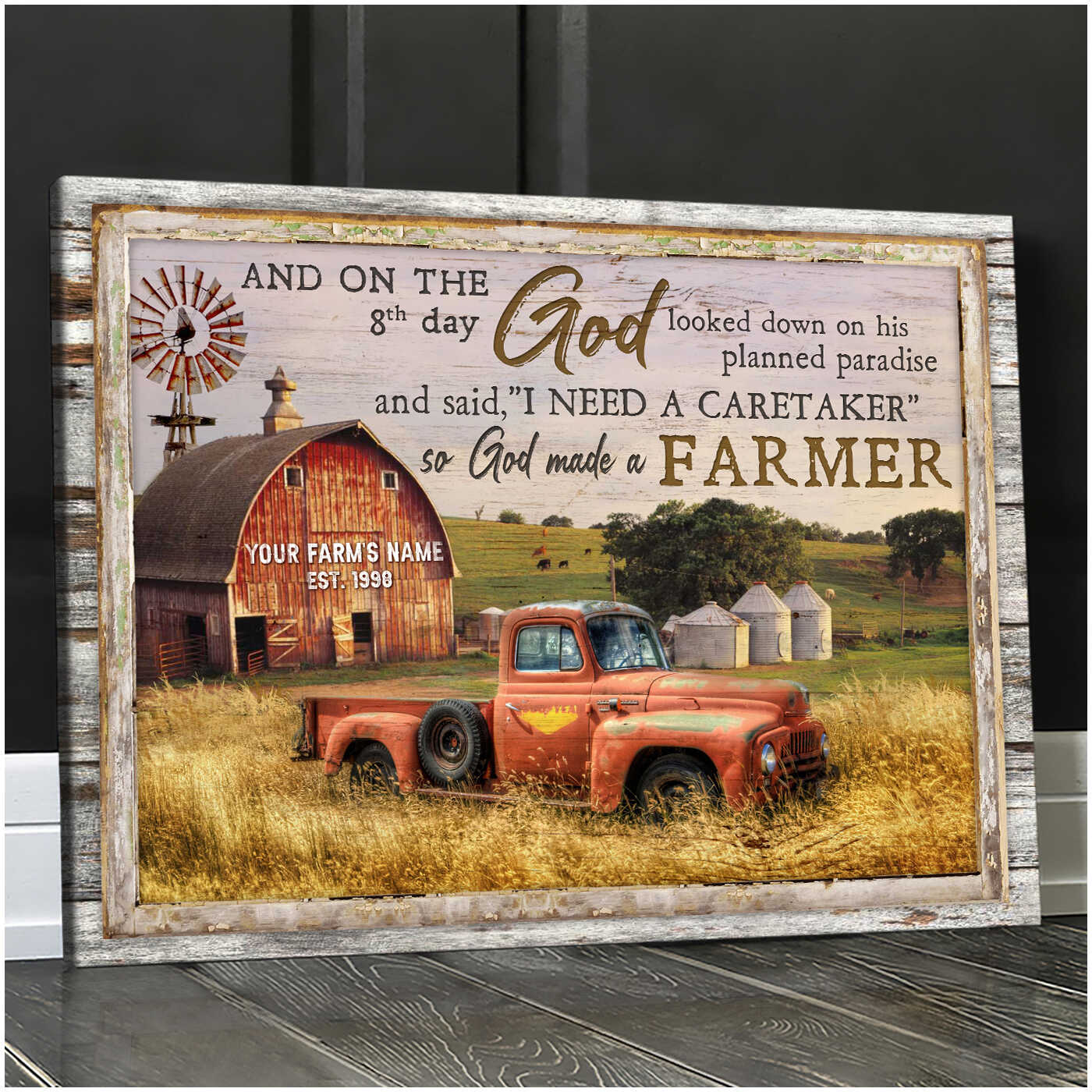 So God Made A Farmer Farm And Truck Personalized Custom Family Name And Date Canvas Prints Wall Art Decor