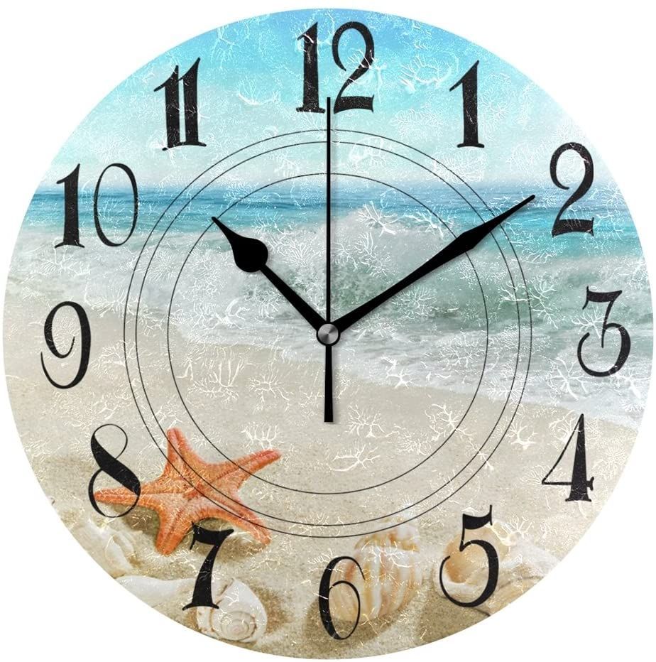 Starfish Shells Waves On The Beach Printed Wall Clock