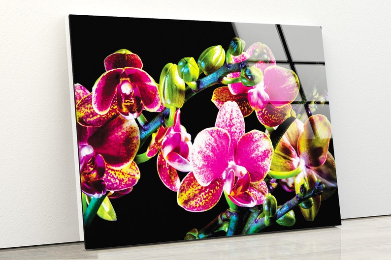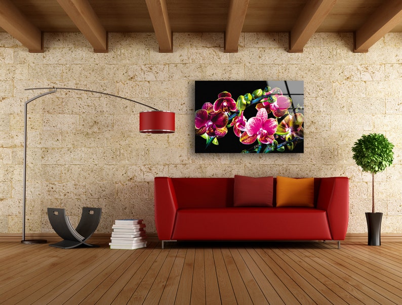Tempered Glass Printing Wall Decor Ation For Living Room Stained Wall Art Orchid Flower Purple Wall Art
