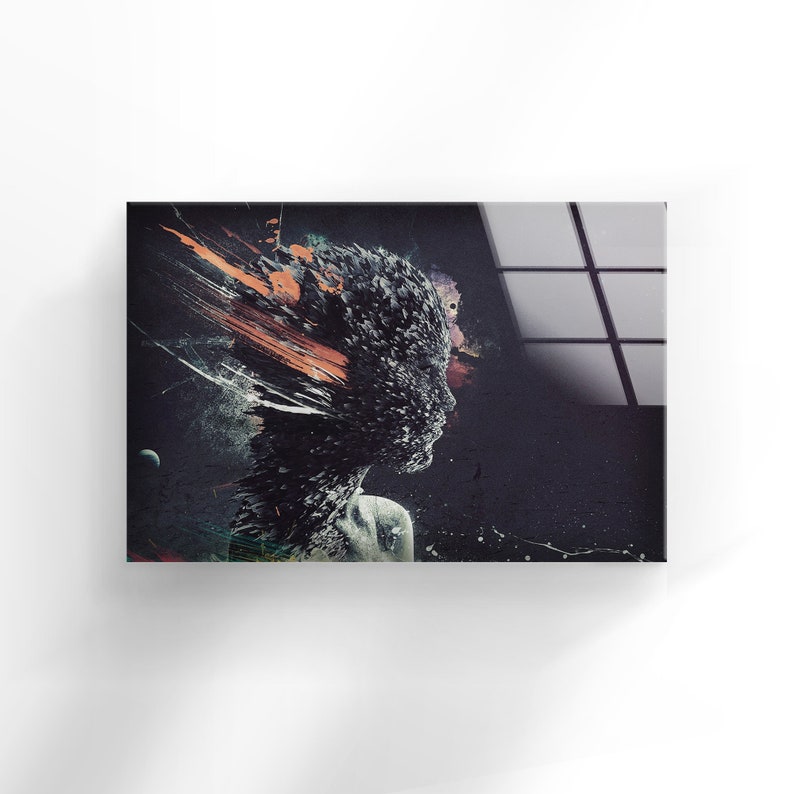 Tempered Glass Printing Wall Decor Ation For Living Room Stained Wall Art Woman Face Wall Art