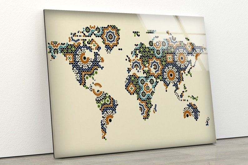 Tempered Glass Wall Art Valentines Decor Glass Printing Stained Wall Art Wall Hanging World Map Wall Art Mosaic Wall Art