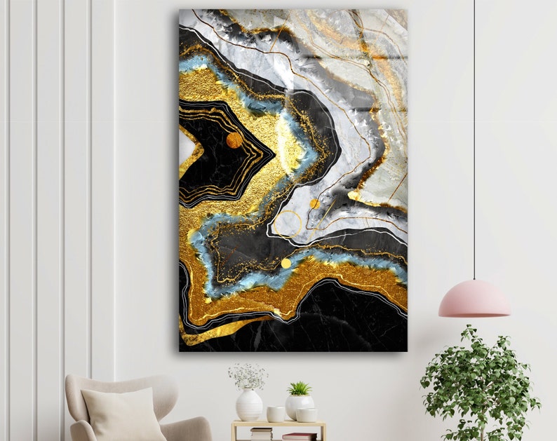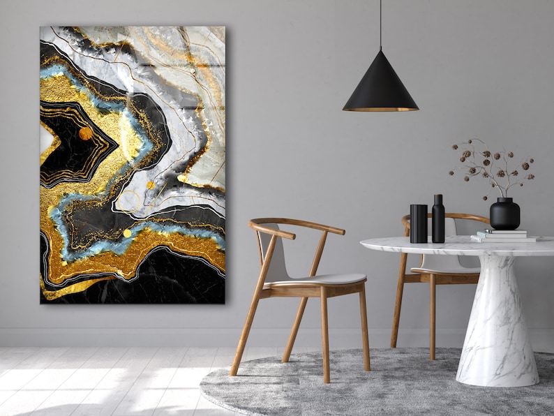 Tempered Glass Wall Art Valentines Glass Printing Wall Hangings Gold Black Abstract Wall Art Epoxy Resin Geode Wall Art