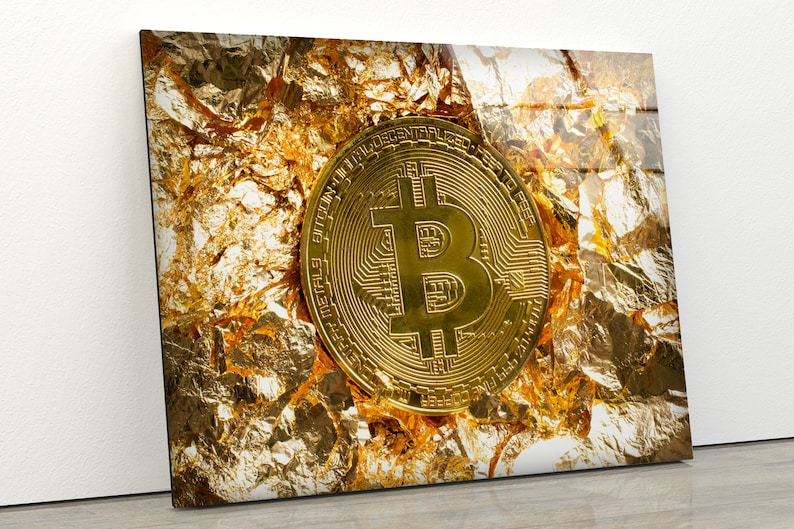 Tempered Glass Wall Art Valentines Gold Wall Decor Glass Printing Wall Hangings Bitcoin Wall Art