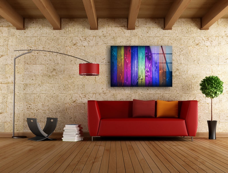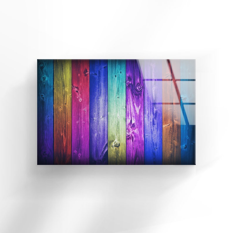 Tempered Glass Wall Decor Glass Printing Wall Hangings Abstract Colorful Wooden