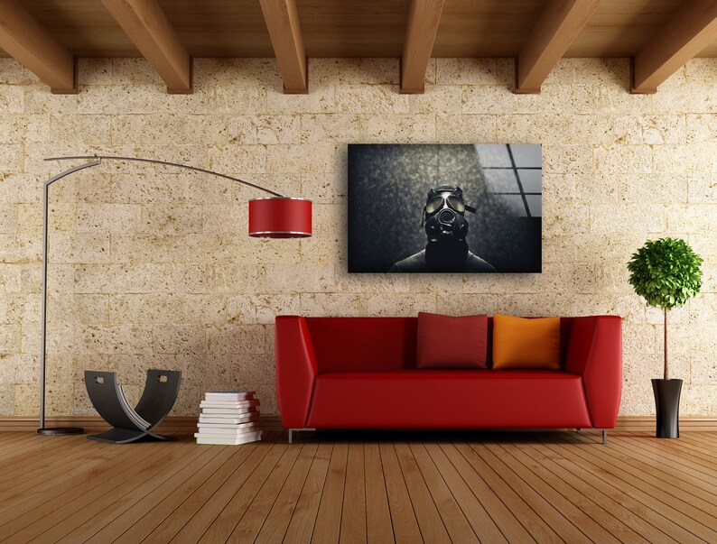 Tempered Glass Wall Decor Glass Printing Wall Hangings Abstract Gas Mask Mask