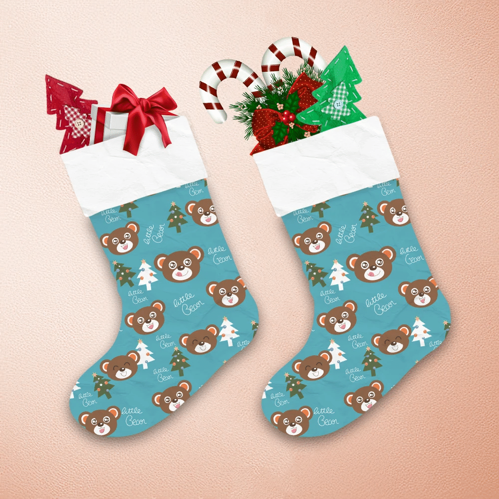 Theme Festival Cute Little Bear And Tree Christmas Stocking