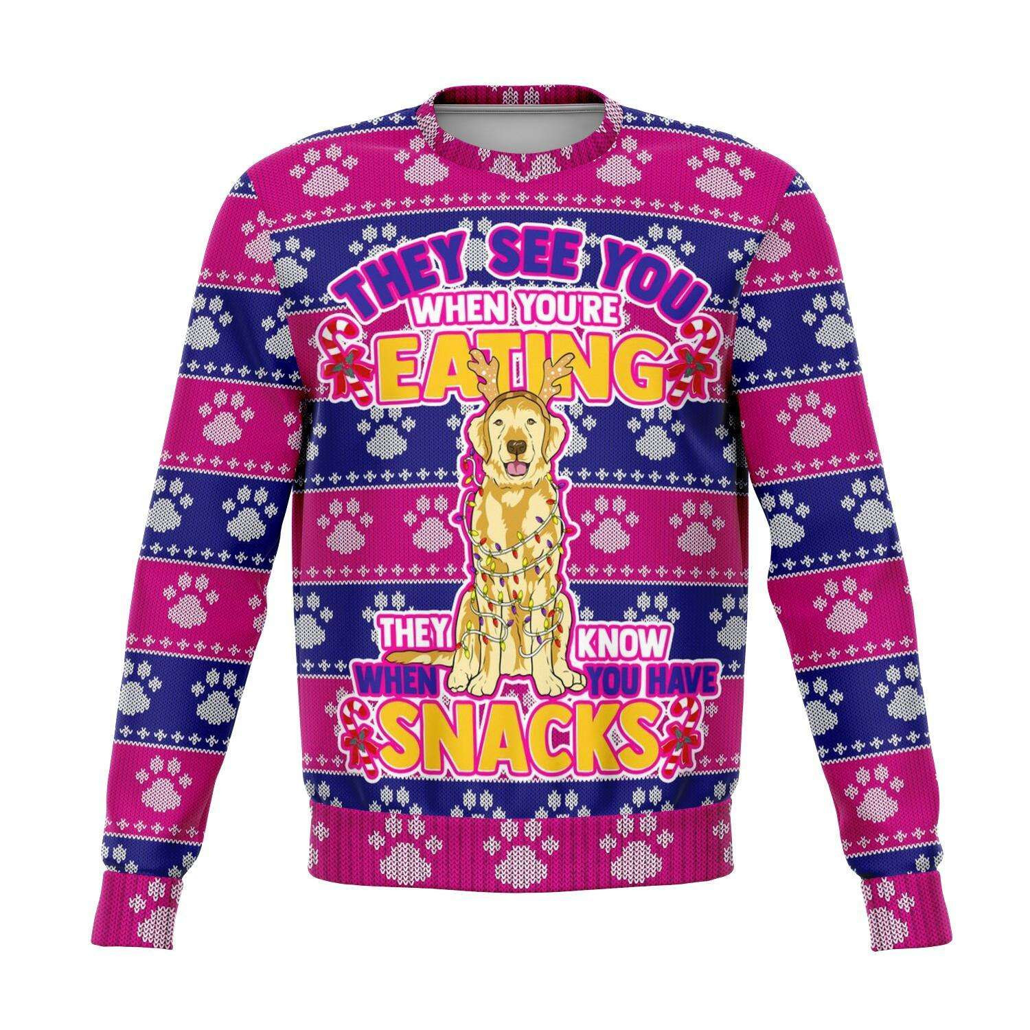 They See You When Your Eating Snacks Golden Retriever – 3D Ugly Christmas Holiday Fashion Sweatshirt