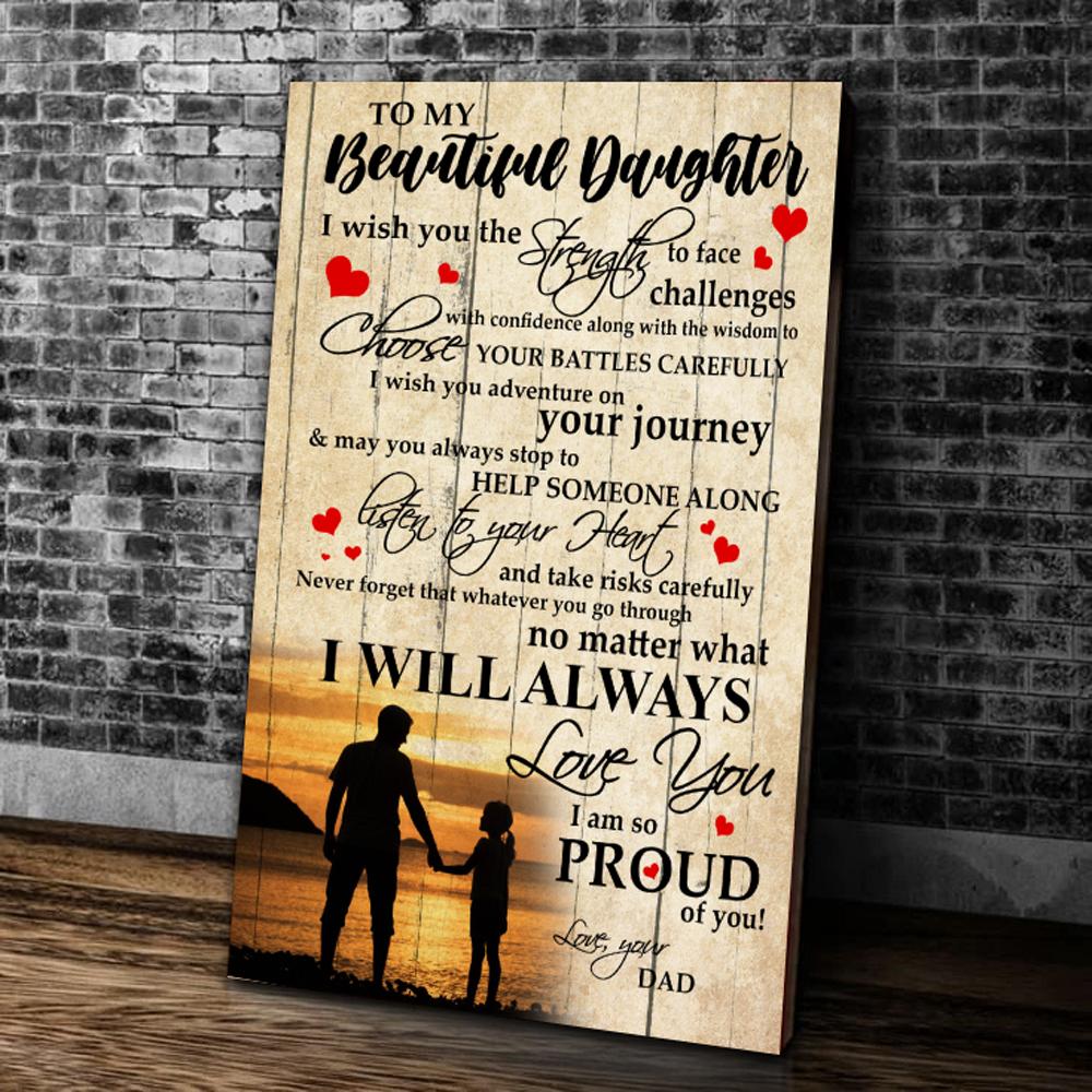 To My Beautiful Daughter I Wish You The Strength To Face Challenges With Confidence, Gift From Dad Canvas