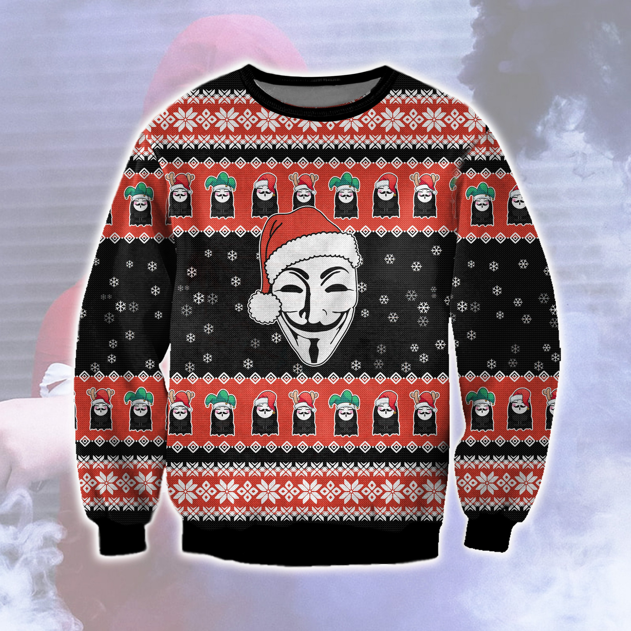 V For Vendetta 3D All Over Printed Ugly Christmas Sweatshirt