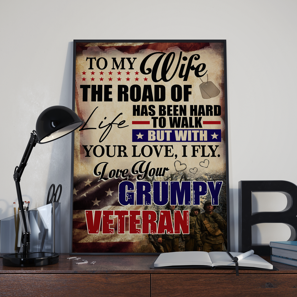 Veteran To My Wife, The Road Of Life Has Been Hard To Walk But With Your Love, I Fly Love Your Grumpy Canvas Prints Wall Art Decor