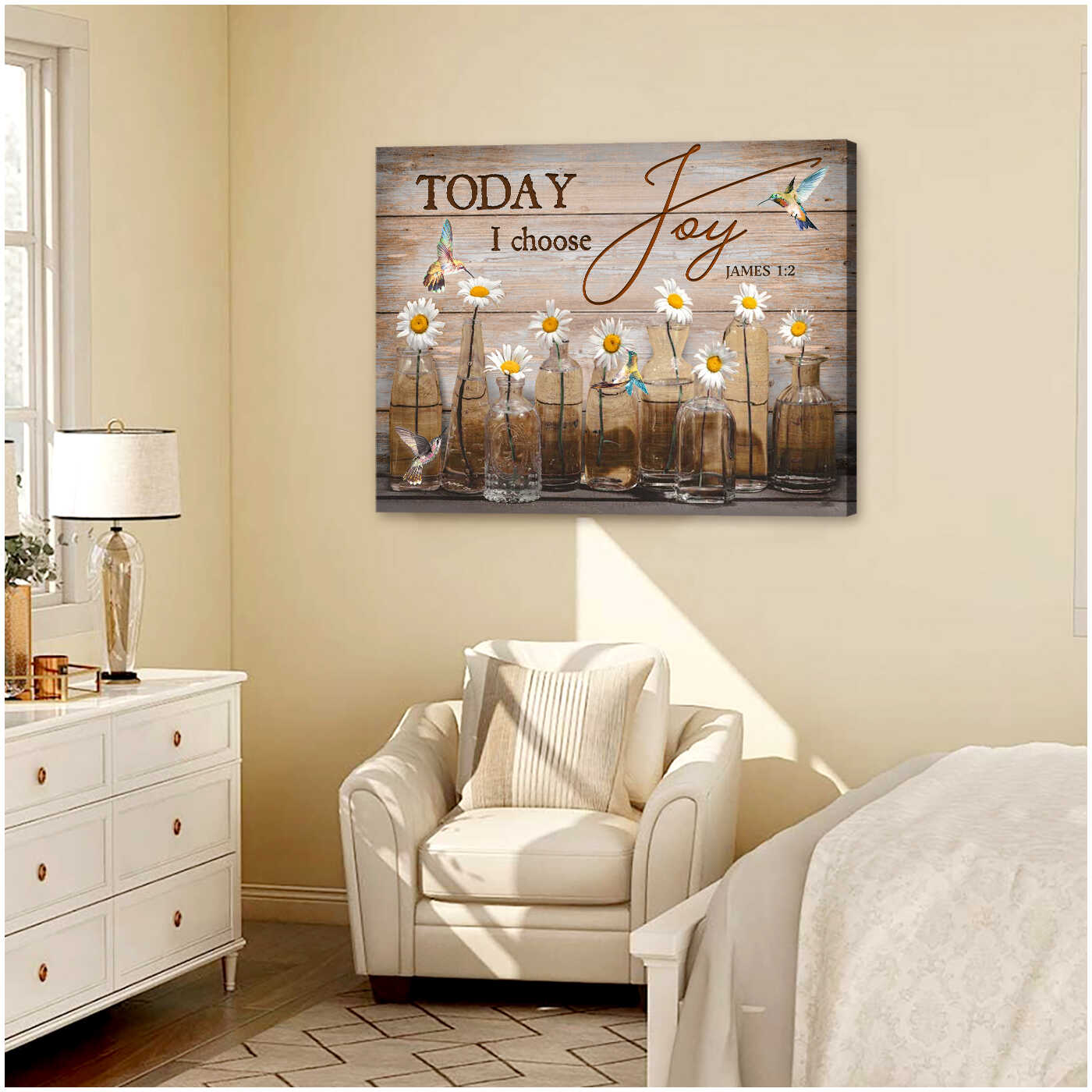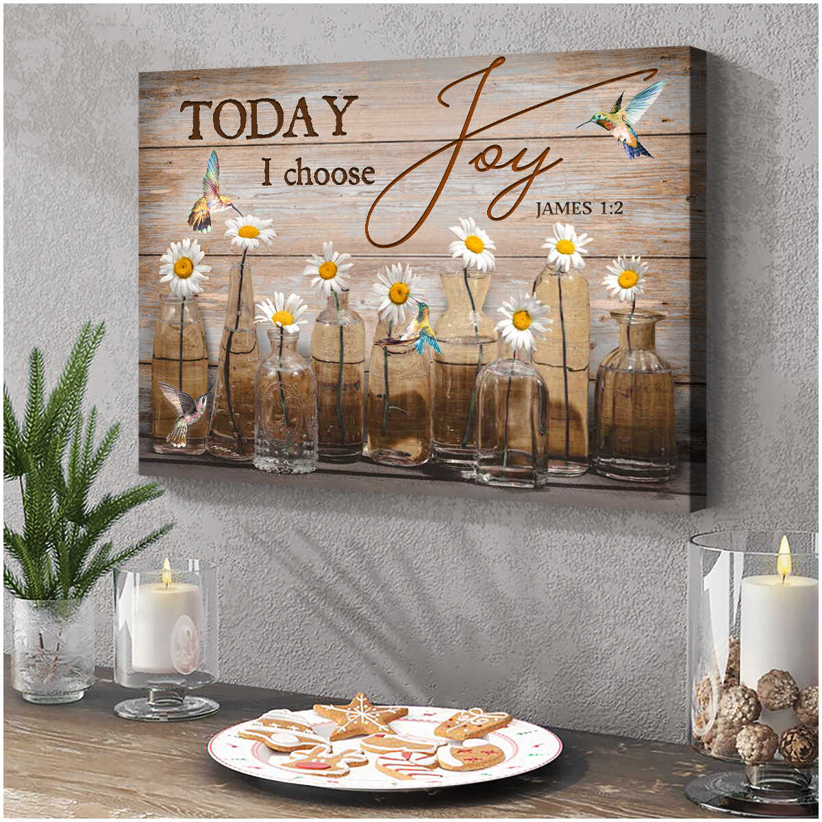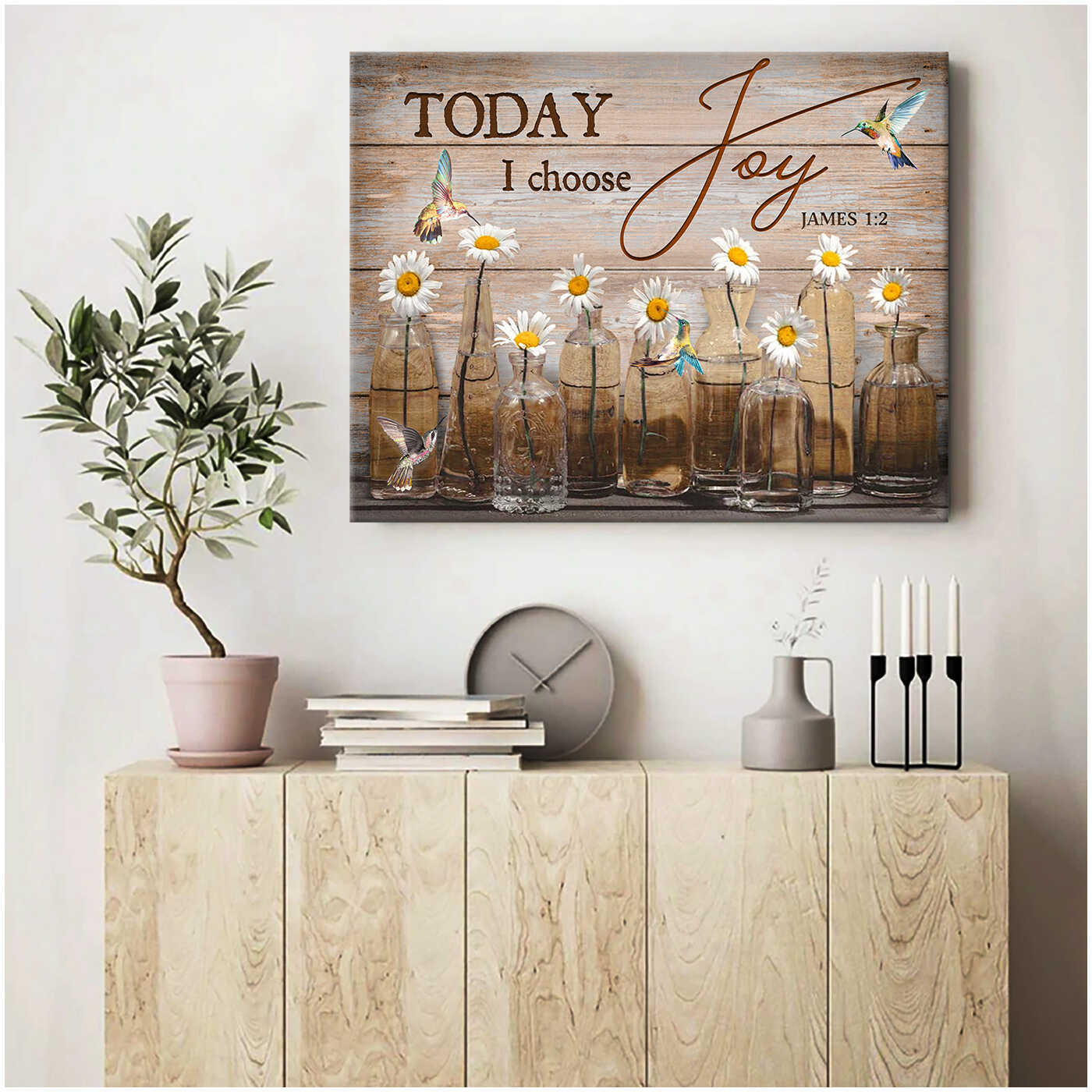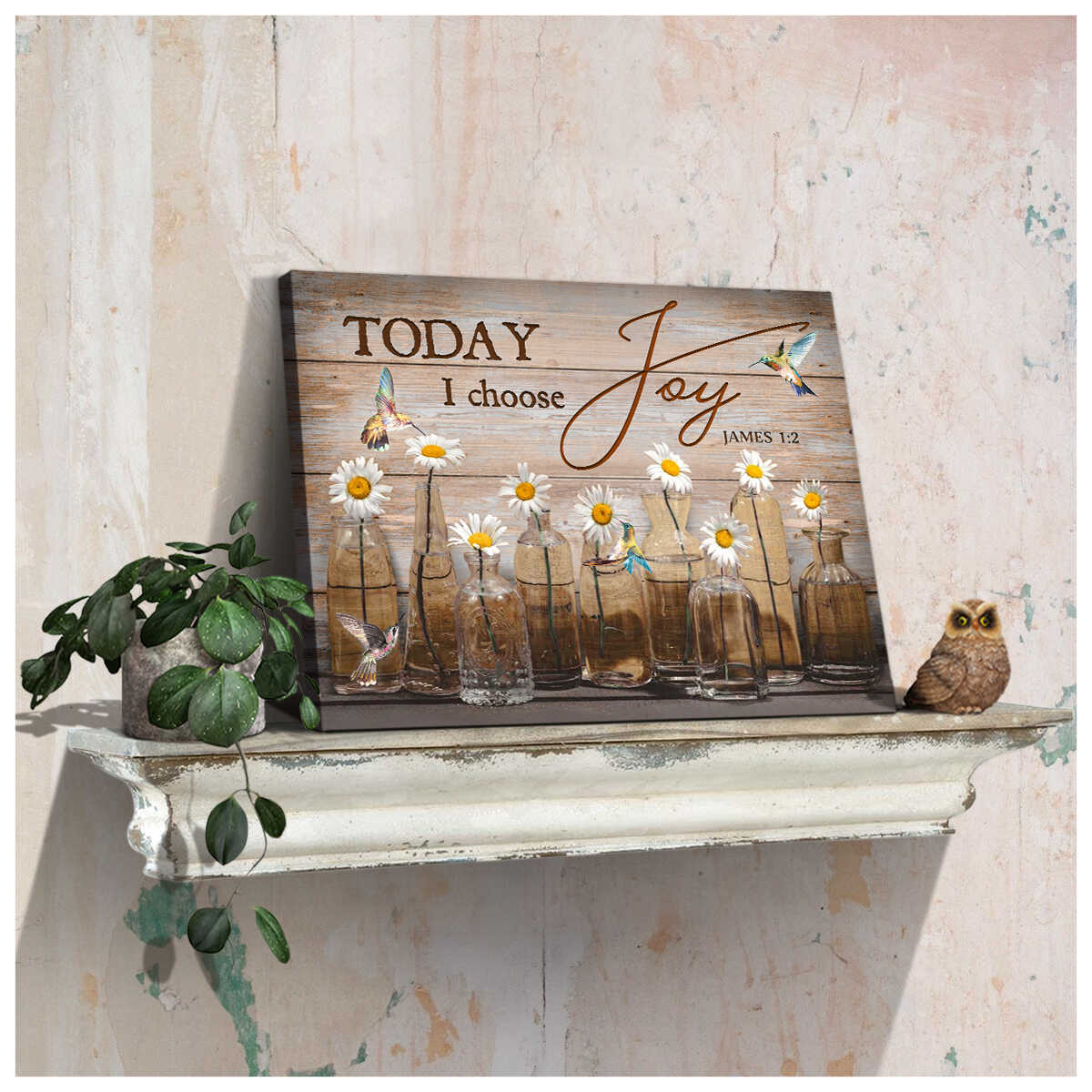 Vintage Rustic Wood And Bellis Perennis Mason Jars And Hummingbirds Today I Choose Joy Farm Farmhouse Canvas Prints Wall Art Decor