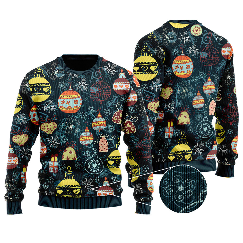 Watercolor Christmas Ball Pattern Ugly Sweaters, Merry Christmas Ugly Sweaters