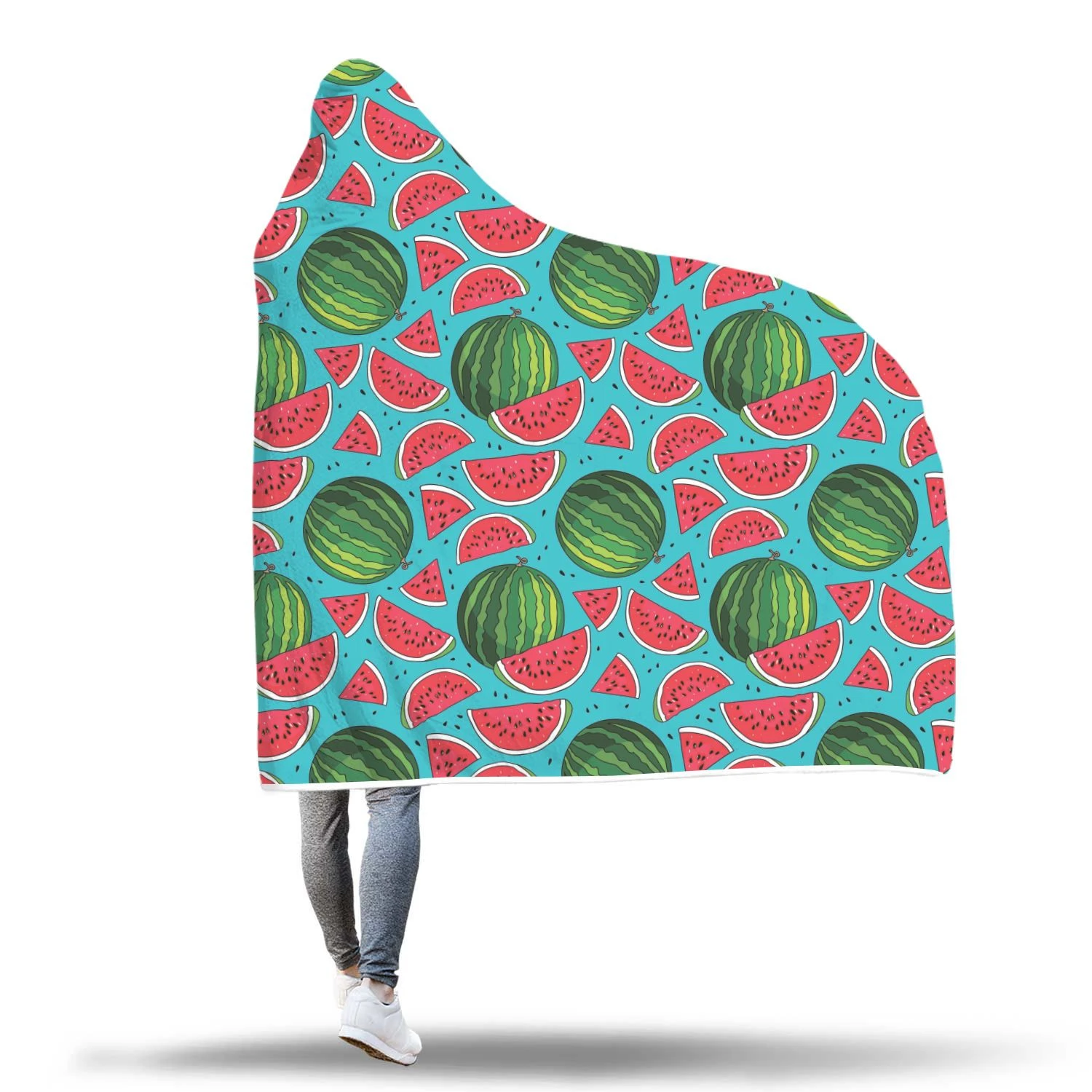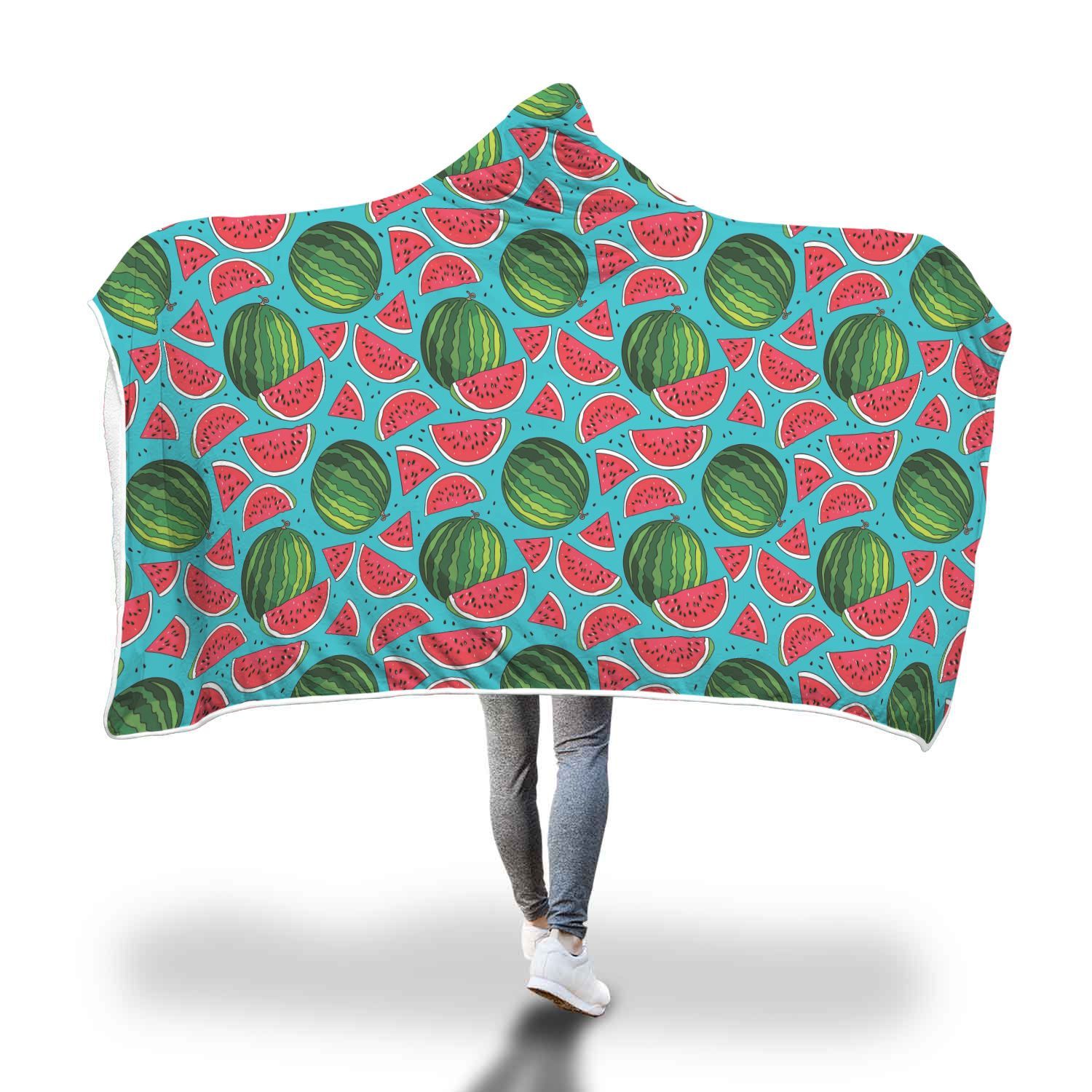 Watermelon Piece Blue Pattern Print Hooded Blanket Cloak Blanket