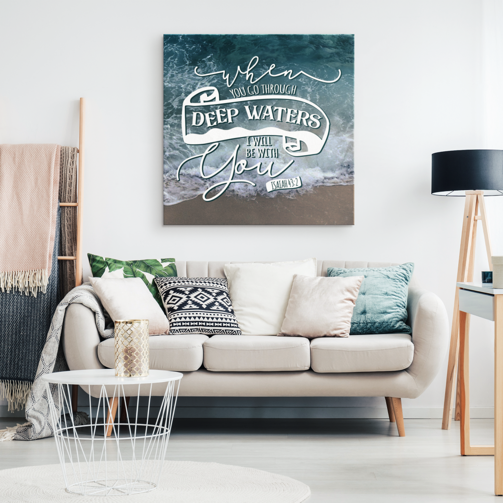 When You Go Through Deep Waters, I Will Be With You. Isaiah 43:2 Canvas Wall Art