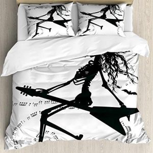 Witch Flying On Electric Guitar Notes Halloween Illustration Duvet Cover Bedding Set Bedroom Decor