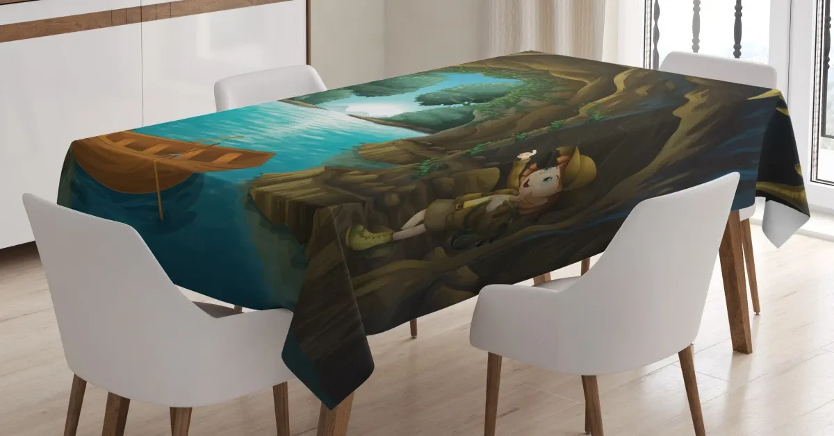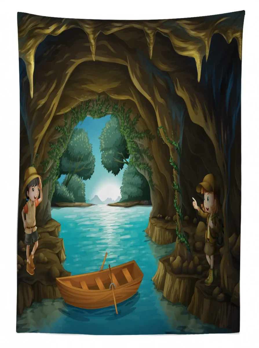Young Explorers In A Cave 3D Printed Tablecloth Table Decor