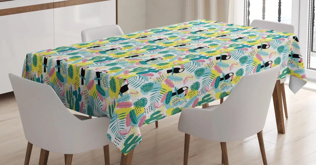 - Upgrade your kitchen table, dining room table, or buffet table with our stunning tablecloth. The tablecloth is made from smooth, thick canvas fabric that won’t snag easily.